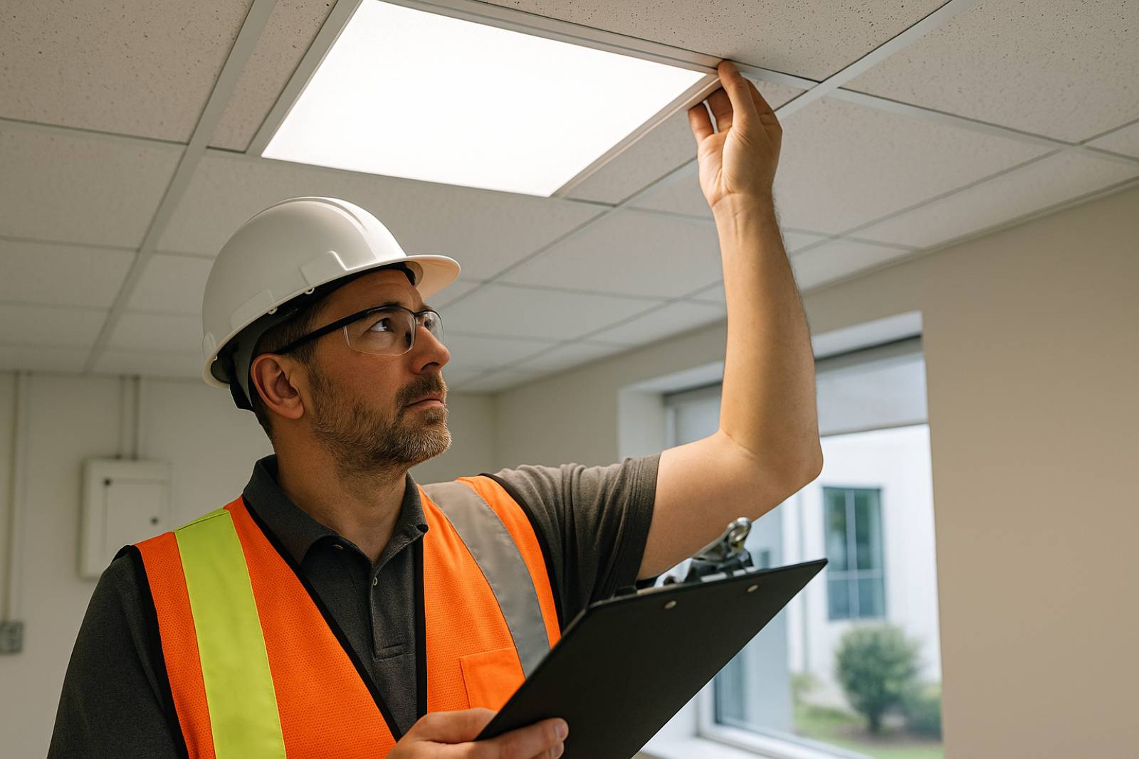 Selon le Code du travail et la EN 12464-1, l’éclairage doit garantir un niveau minimal d’éclairement, une uniformité suffisante et une sécurité électrique conforme.